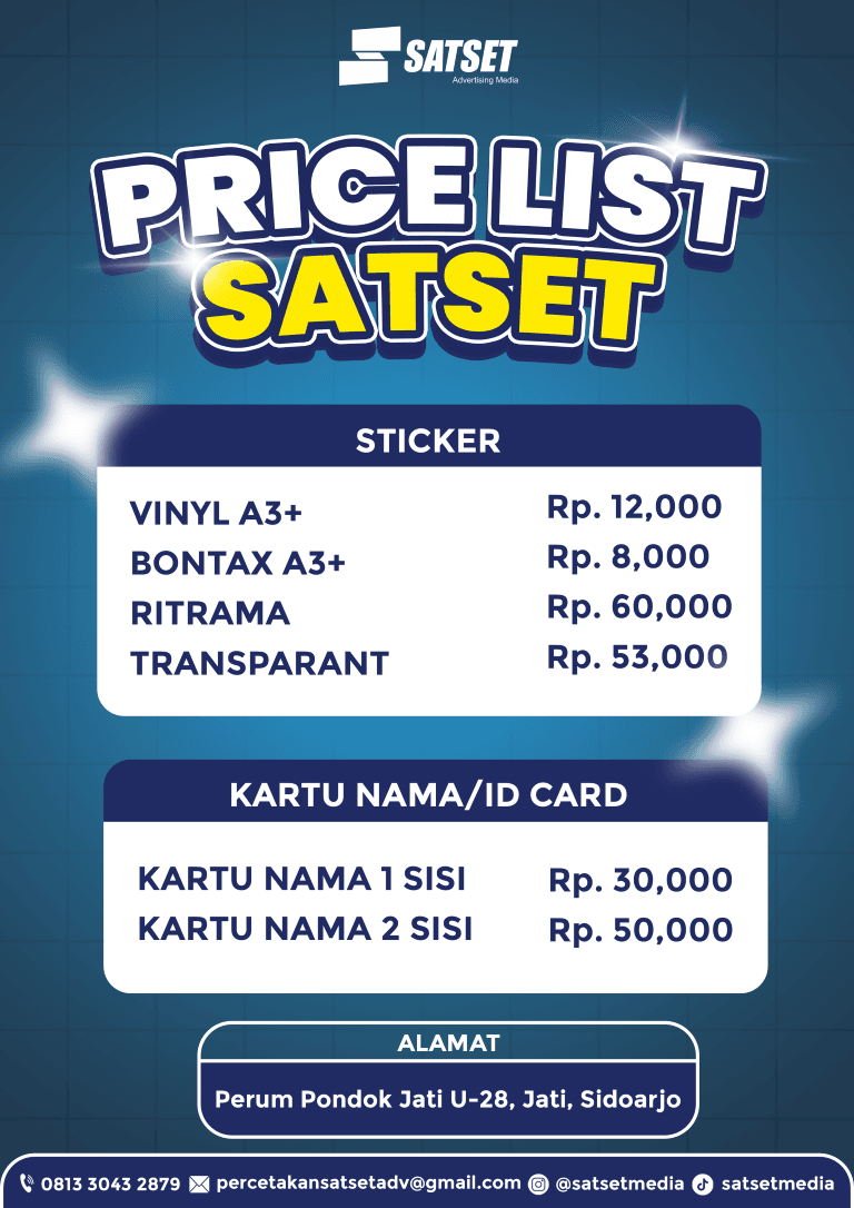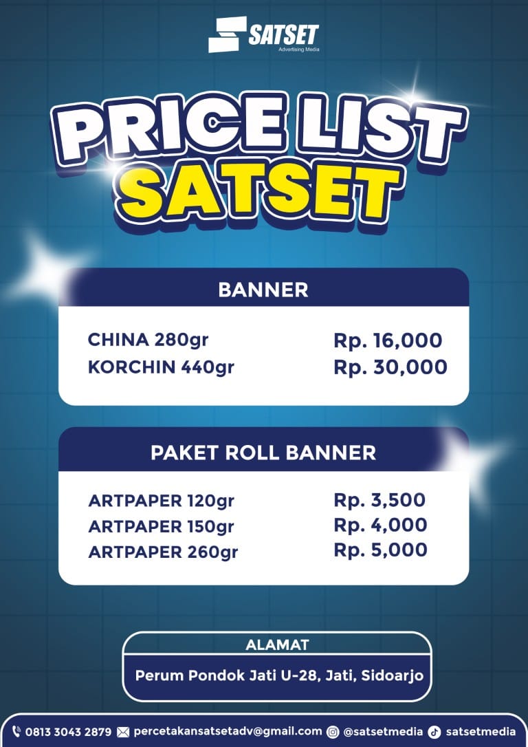 Hasil Akurat, Pengerjaan Tepat Waktu, Layanan Antar, Pengerjaan Professional, Bahan Berkualitas. Melayani cetak : Banner, Baliho, Soanduk, X Banner, Sticker, Roll Banner, Art Paper, Kartu Nama, ID Card, Fotocopy, Copy Print (scan & color), Brosur/Pamflet, Sertifikat, Support Kertas Plain Paper, A4, F4, A3, A3SR